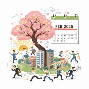 みなさんおはようございます。今日からいよいよ2月です。2月に入ると、街の不動産屋さんの看板やネット広告が一段と賑やかになります。なぜなら、2月1日は「不動産シーズン超繁忙期」への突入記念日と言っても過言ではないからです。