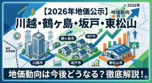 2026年3月、国土交通省より最新の「地価公示」が発表されました。埼玉県内でも当社の得意エリア、東武東上線沿線の主要4市(川越市、鶴ヶ島市、坂戸市、東松山市)の地価はどう動いたのでしょうか?
